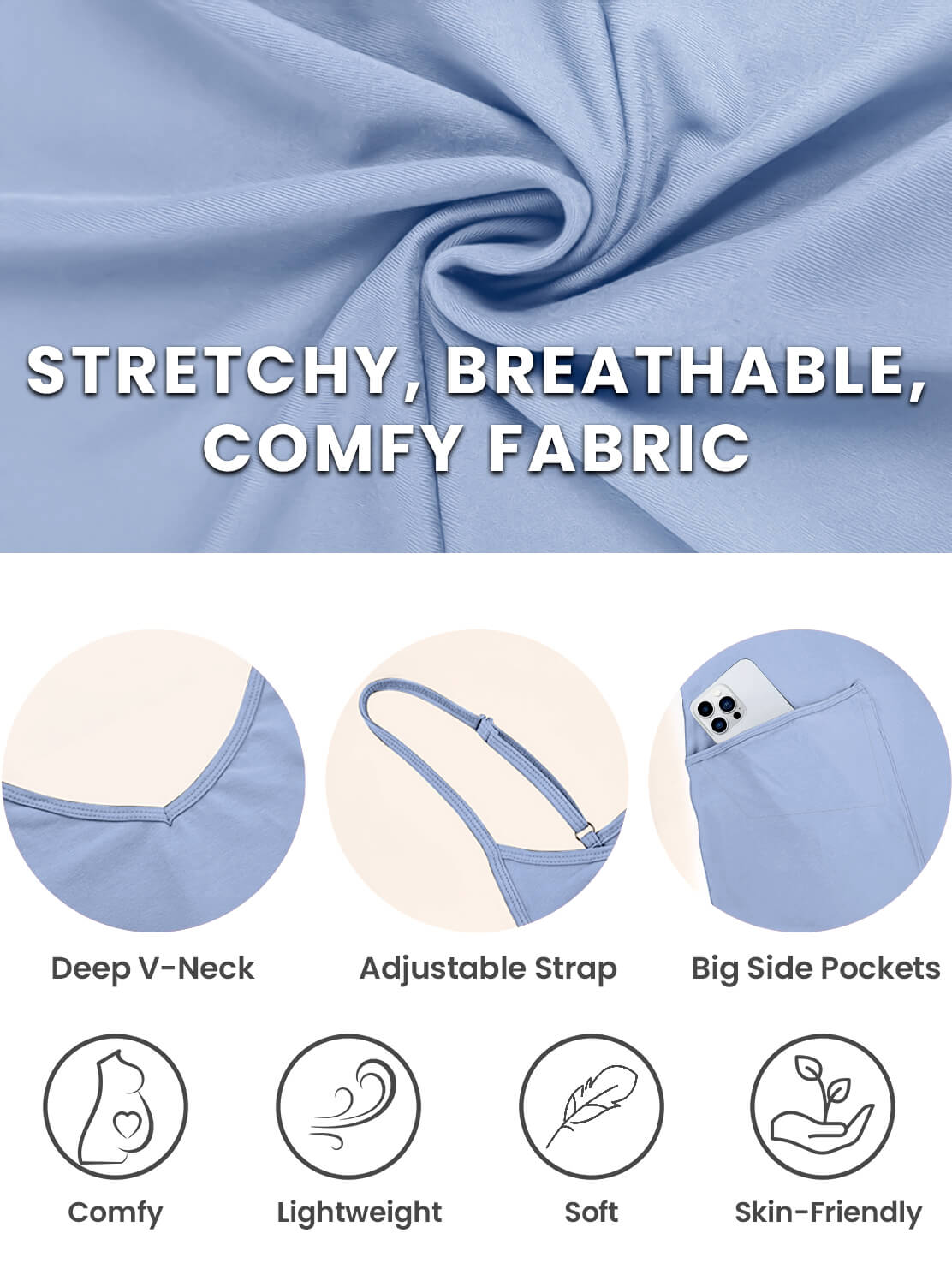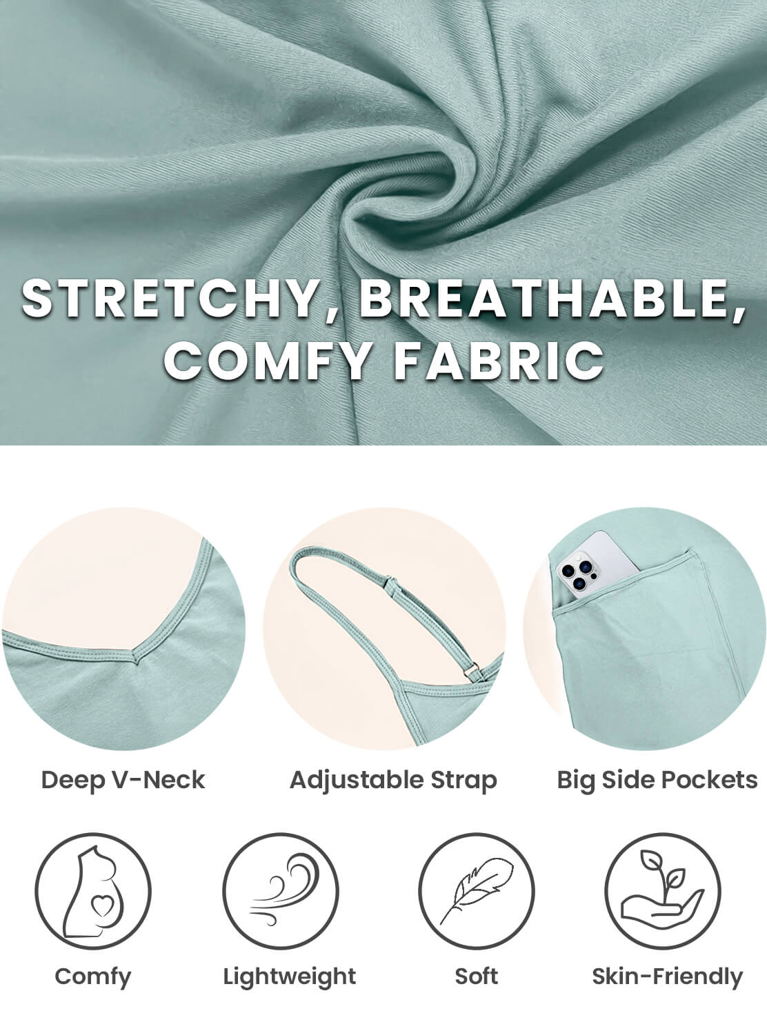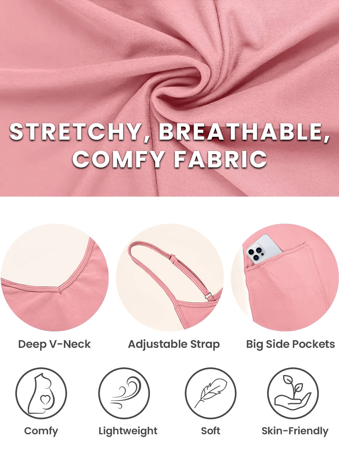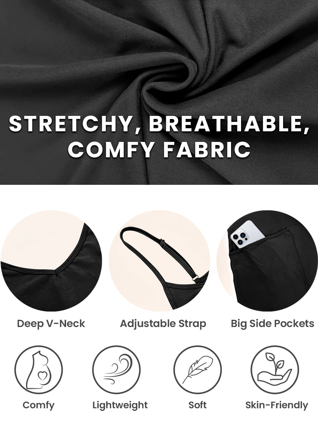 The fabric is incredibly soft, lightweight, and breathable—perfect for keeping cool during pregnancy. It’s also super stretchy, providing just the right amount of give to accommodate your growing bump without feeling restrictive.