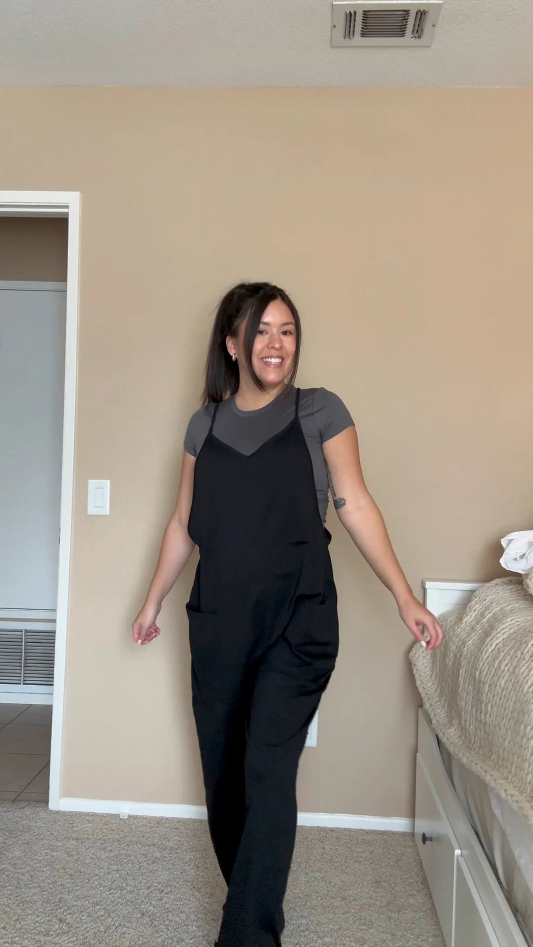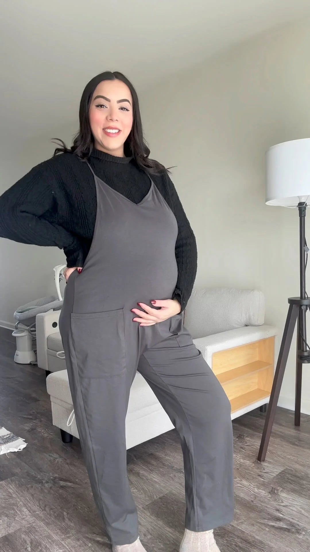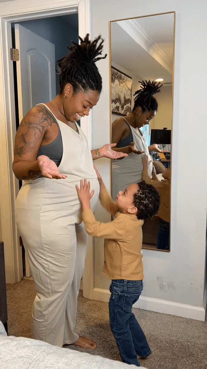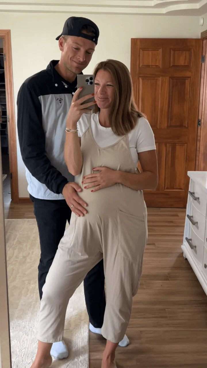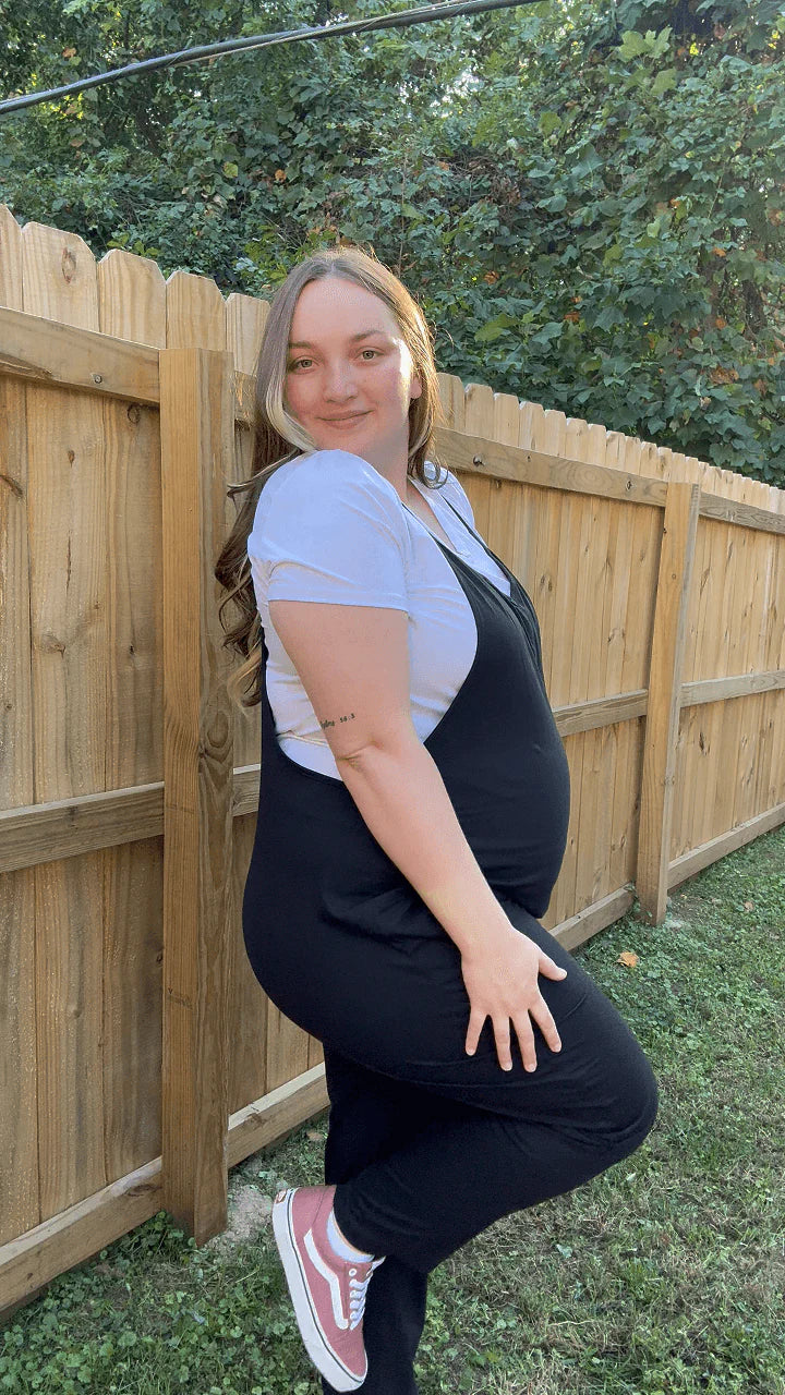 Absolutely! The jumpsuit is specifically designed to grow with your bump. The stretchy material and adjustable straps provide a perfect fit from the first trimester to the last. It also works beautifully postpartum for nursing or everyday wear.