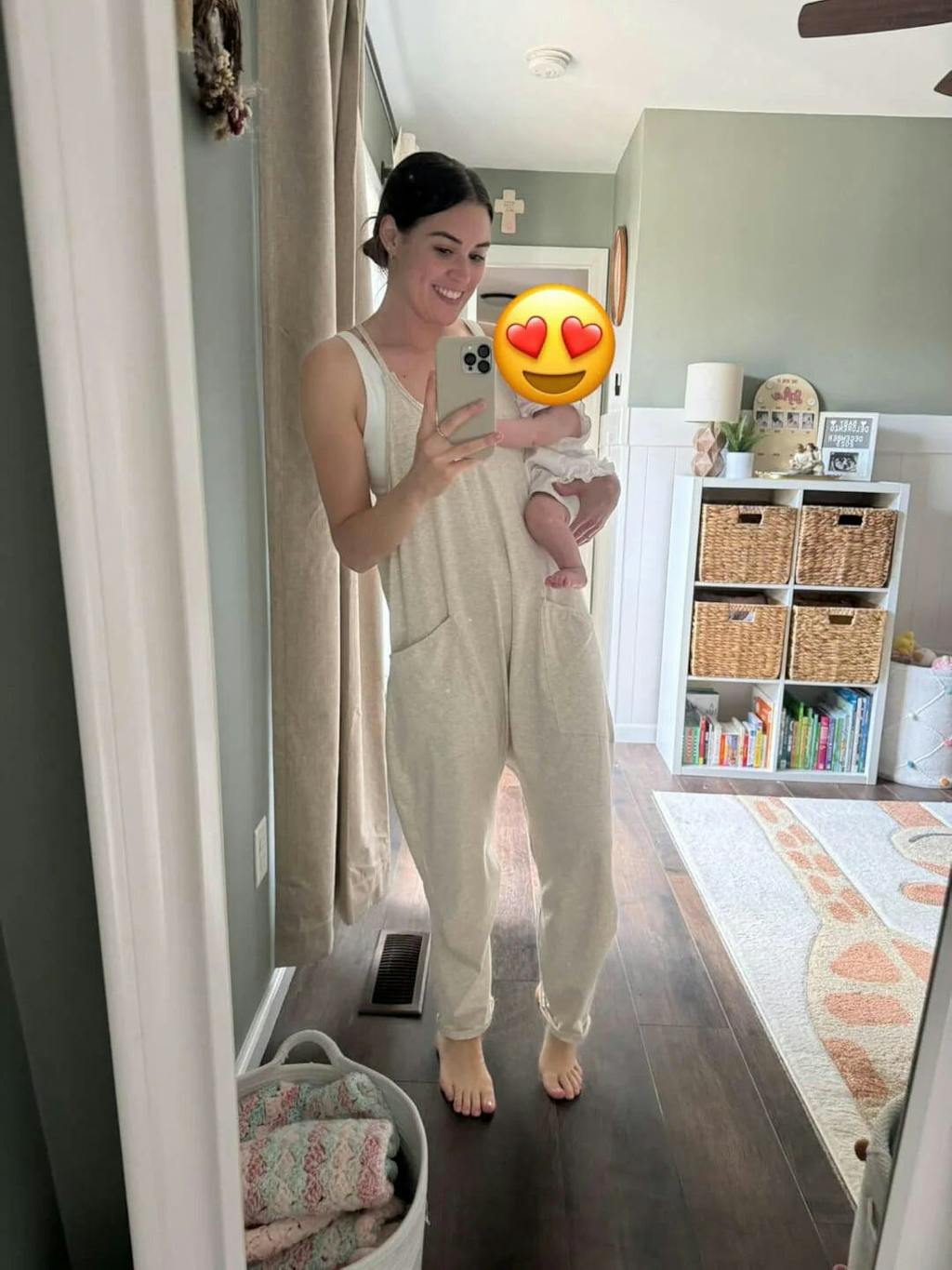 Yes! The jumpsuit’s adjustable straps make it nursing-friendly. Simply loosen the straps for quick and easy breastfeeding access.