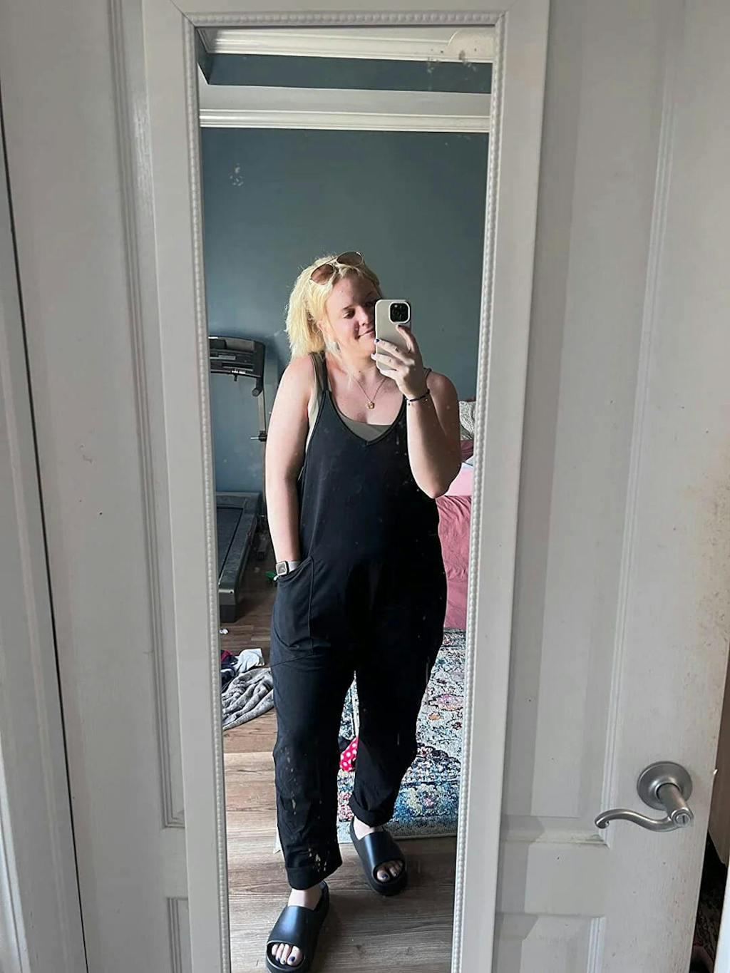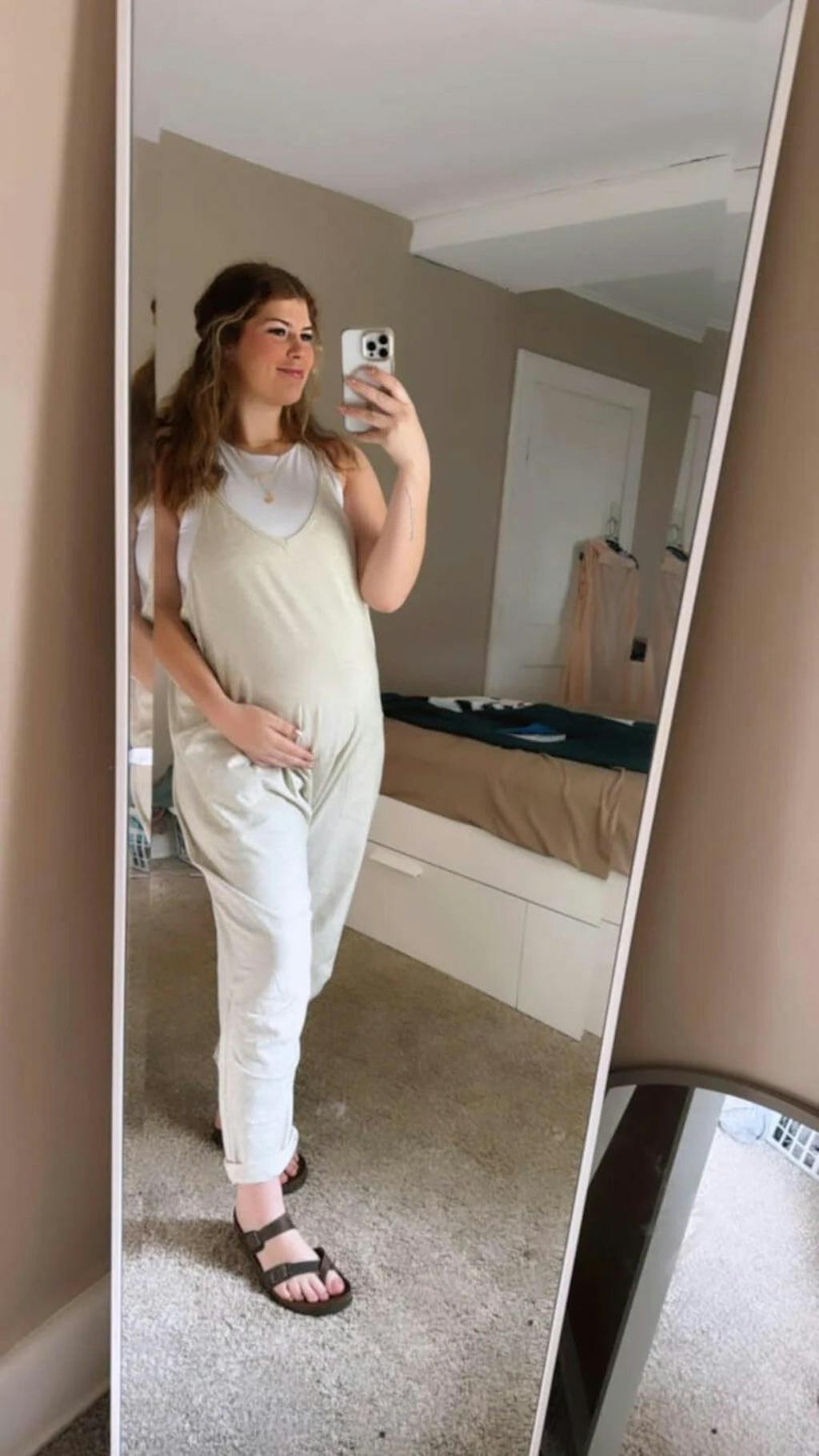 Does the jumpsuit have adjustable straps or features for a growing belly?