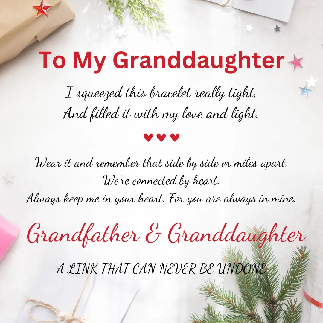 Imagine the look on your granddaughter's face when she receives this heartfelt bracelet, a tangible symbol of your love and connection. The message card, filled with your warm words, will bring a tear to her eye and a smile to her face.