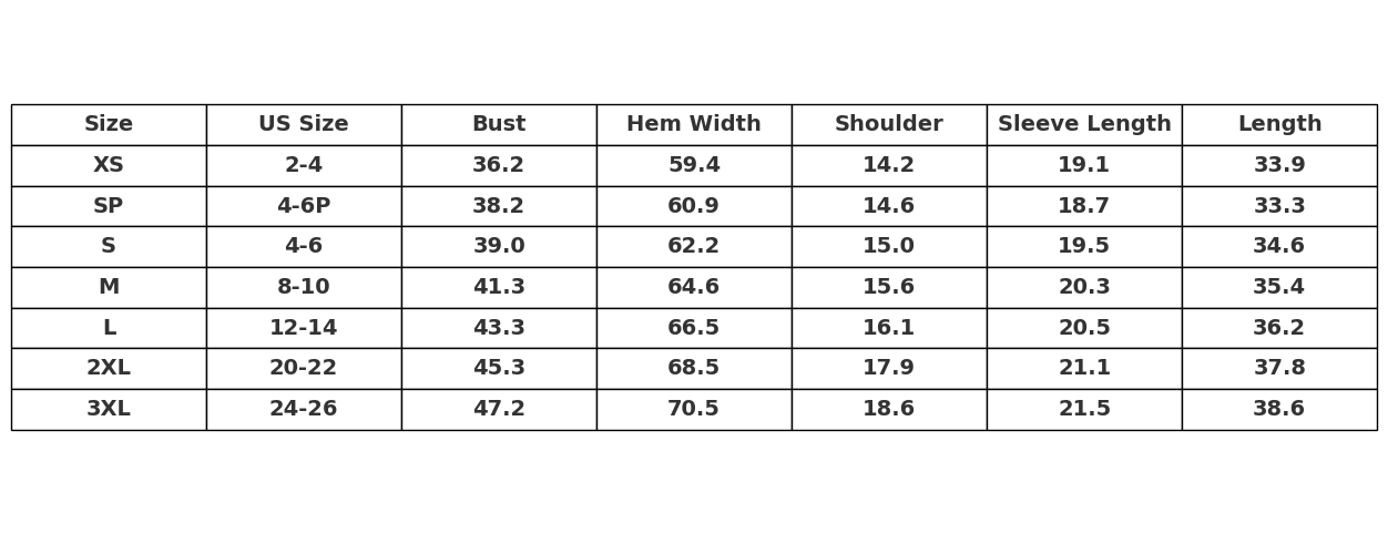 Sizing Chart