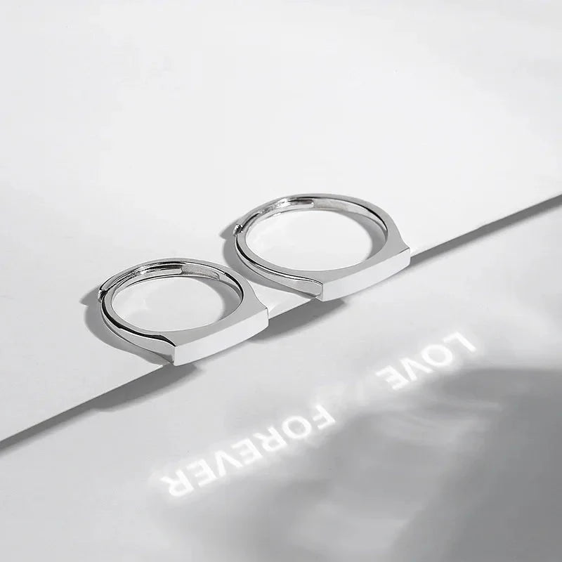 These rings are more than jewelry; they are a promise and a love story waiting to unfold. As light dances across their surface, a hidden message of love is revealed, completing a heartfelt phrase when worn together. It’s an intimate moment, a bond only the two of you can understand.
